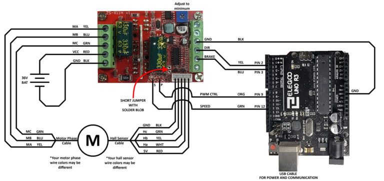JUYI JYQD-V7.3E2 is an Arduino BLDC Motor Driver, Max Power 500W and Hall Effect with Hall at 120°
